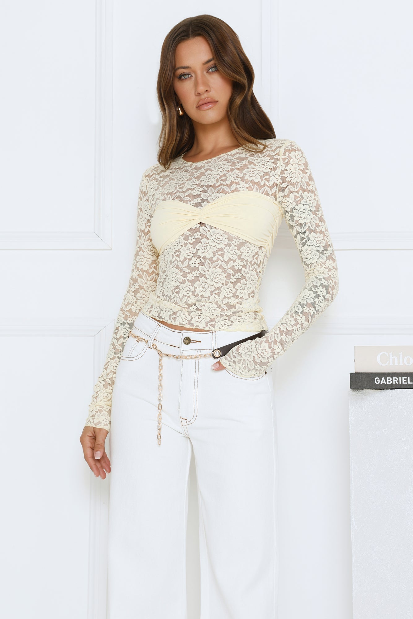 Elevate your style with the Midnight Long Sleeve Top. True to size with lace fabric, cinched bust overlay, and long sleeves, this top is perfect for date nights, brunches, or evening events. Pair with high-waist skirts or jeans and heels to complete the look.